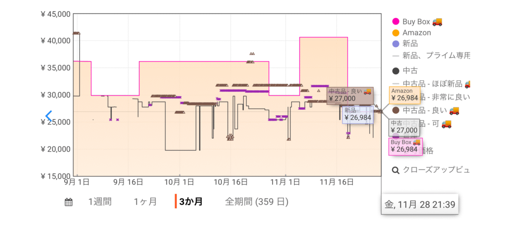 ブラックフライデーセールと聞くと、期間限定セールと思いがちかもしれない。でも正直内容をよく見ると、普段やっているセールの内容と対して変わらないことが殆どです。皆さんのスマホ、あるいはパソコンで「keepa」というアプリを導入してみて欲しい。